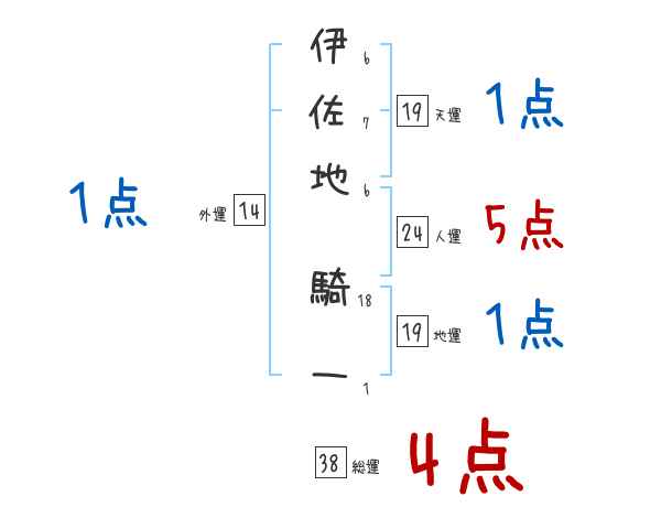 天運![]() | 伊佐地騎一さんの天運は19画の1つ星!優れた才能を持ちますが、協調性が足りないことも。周りの人と協力する事を意識しましょう。 家系が持つ宿命的な運勢を表します。祖先から受け継いだ苗字ですので自分の力が及びません。家柄を象徴します。 |
