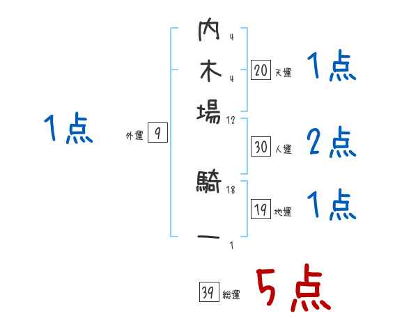 外運![]() | 内木場騎一さんの外運は9画の1つ星!消極的で才能を発揮することが苦手なことも。周りの意見に耳を傾けましょう。 生活面を象徴する運勢です。外部から受ける影響力を表し、結婚運、家庭運や職場、環境への順応性を表します。 |