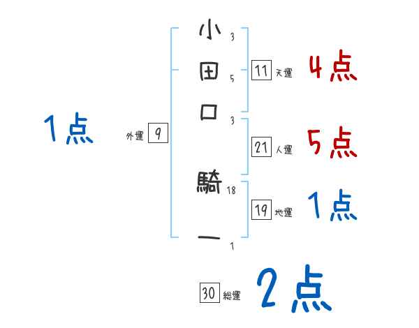 天運![]() | 小田口騎一さんの天運は11画の4つ星!着実に富や地位を得る幸運な人生。 家系が持つ宿命的な運勢を表します。祖先から受け継いだ苗字ですので自分の力が及びません。家柄を象徴します。 |