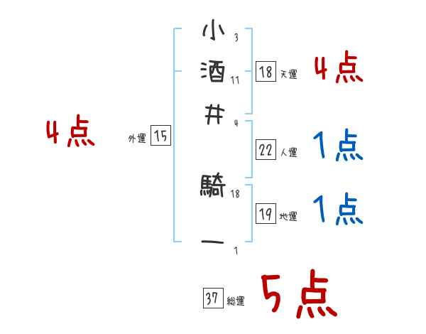 外運![]() | 小酒井騎一さんの外運は15画の4つ星!人徳があり出世する。順調に物事を進め円満な人生。 生活面を象徴する運勢です。外部から受ける影響力を表し、結婚運、家庭運や職場、環境への順応性を表します。 |