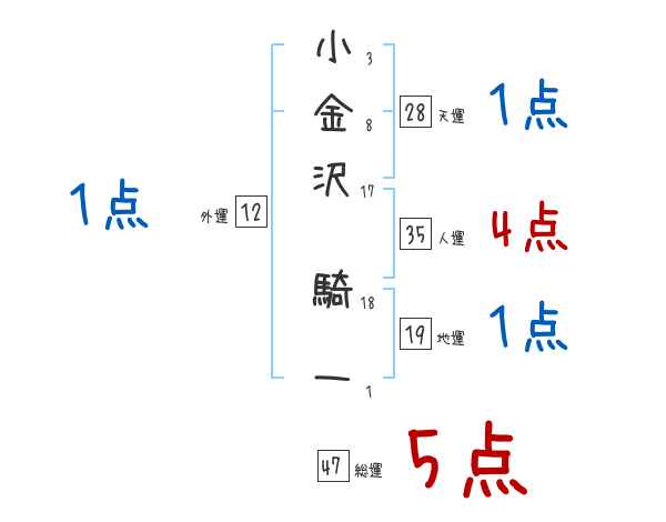小金沢騎一さんの画数の鑑定結果