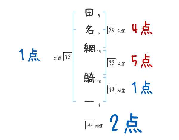 地運![]() | 田名網騎一さんの地運は19画の1つ星!優れた才能を持ちますが、協調性が足りないことも。周りの人と協力する事を意識しましょう。 個性を表す基礎的な運勢です。性格形成や対人関係、行動力など家庭環境に影響されます。主に誕生してから20歳くらいまでの若年期の運勢を表します。 |