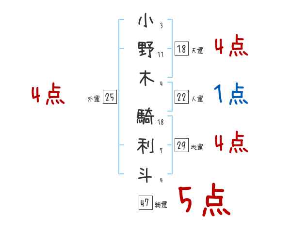 小野木騎利斗さんの画数の鑑定結果