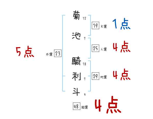 菊池騎利斗さんの画数の鑑定結果