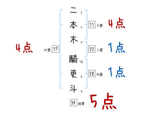 二本木騎吏斗さんの画数の鑑定結果