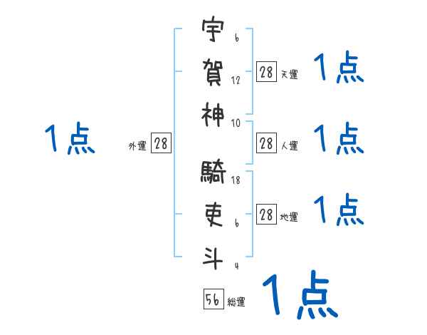 宇賀神騎吏斗さんの画数の鑑定結果