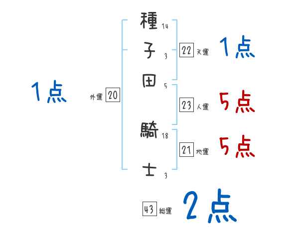 総運![]() | 種子田騎士さんの総運は43画の2つ星!頑固な性格で独立心が強いかも。やや非現実的で浪費に注意しましょう。 あなたの人生を表す1番重要な運勢です。生涯を通じて影響する総合運となり、主に50歳以降の晩年期に影響を及ぼします。 |