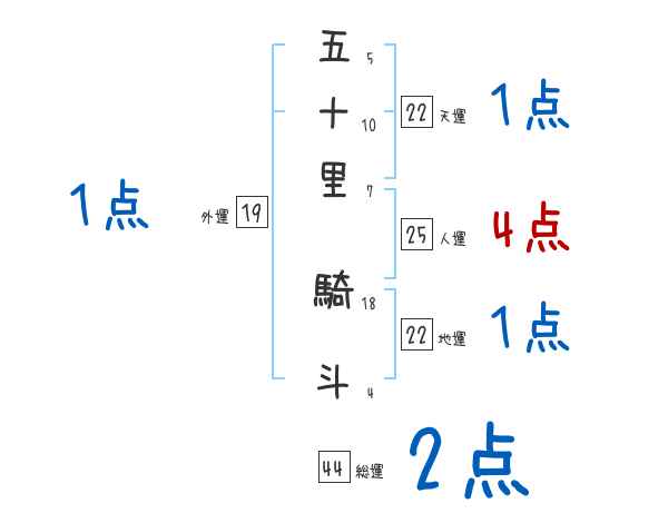 五十里騎斗さんの画数の鑑定結果