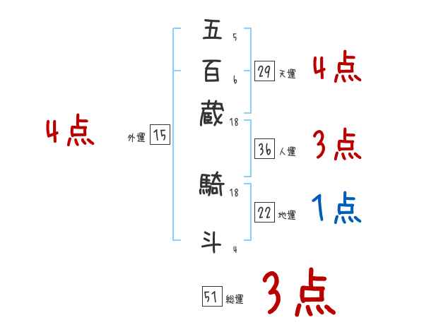 天運![]() | 五百蔵騎斗さんの天運は29画の4つ星!完全主義で才能がある。厳格な心の持ち主。 家系が持つ宿命的な運勢を表します。祖先から受け継いだ苗字ですので自分の力が及びません。家柄を象徴します。 |