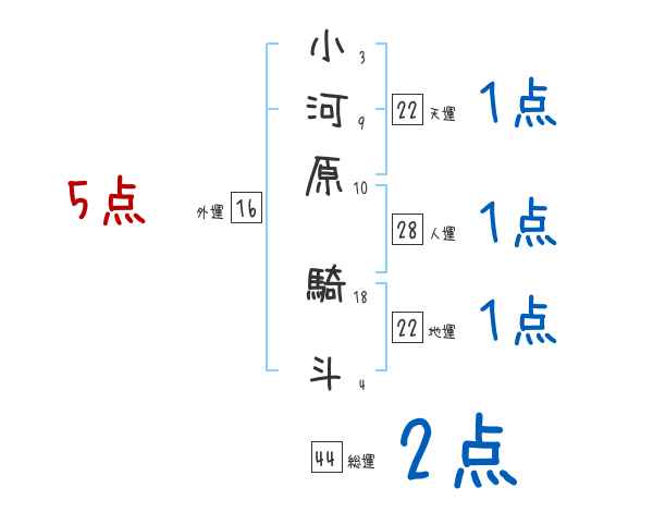 小河原騎斗さんの画数の鑑定結果