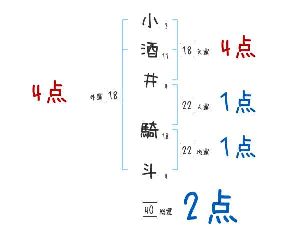 天運![]() | 小酒井騎斗さんの天運は18画の4つ星!情熱的で剛気。忍耐力があり信頼される。 家系が持つ宿命的な運勢を表します。祖先から受け継いだ苗字ですので自分の力が及びません。家柄を象徴します。 |
