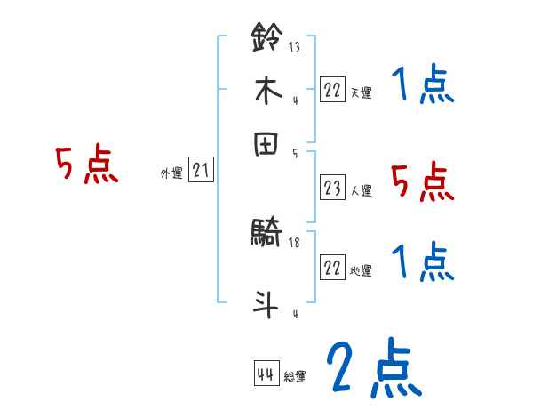 鈴木田騎斗さんの画数の鑑定結果