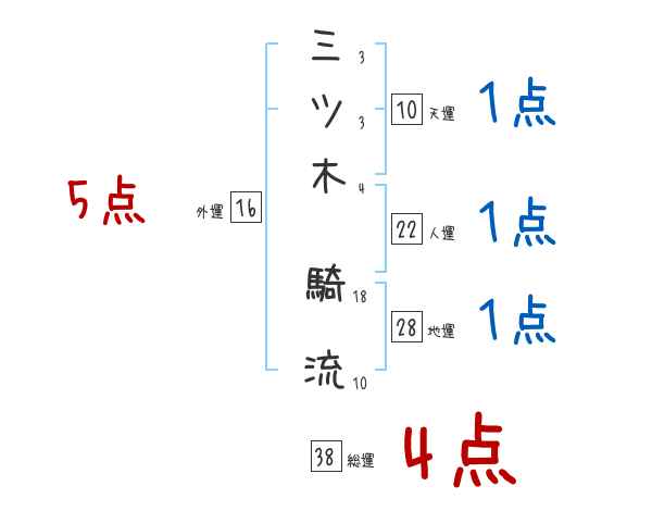 三ツ木騎流さんの画数の鑑定結果