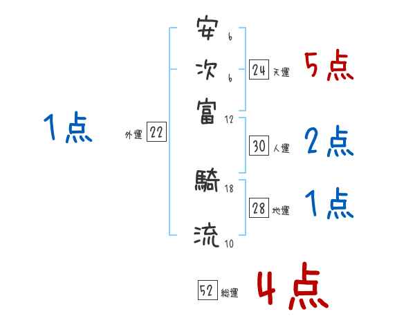 他にも占いサイトは数多くありますが、占い師や流派によって、字画の数え方運勢の吉凶が異なり、当サイトで運勢が良くなくても、他のサイトで良い運勢が出ることがあります。
