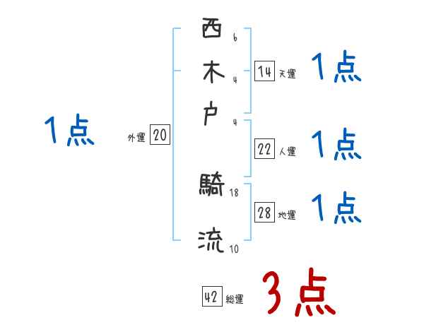 総運![]() | 西木戸騎流さんの総運は42画の3つ星!病気に注意。多芸であるが消極的でおとなしい。 あなたの人生を表す1番重要な運勢です。生涯を通じて影響する総合運となり、主に50歳以降の晩年期に影響を及ぼします。 |