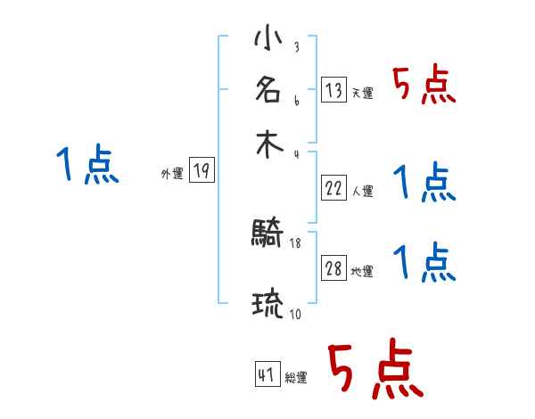 小名木騎琉さんの画数の鑑定結果