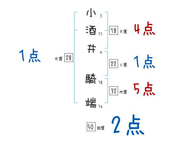 小酒井騎端さんの画数の鑑定結果