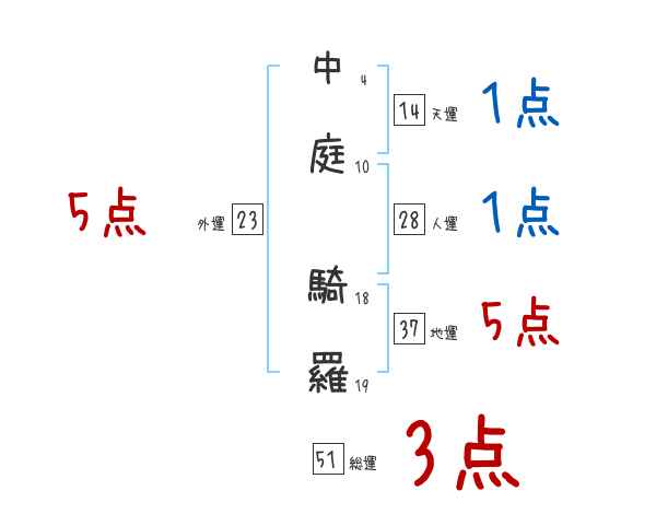 中庭騎羅さんの画数の鑑定結果