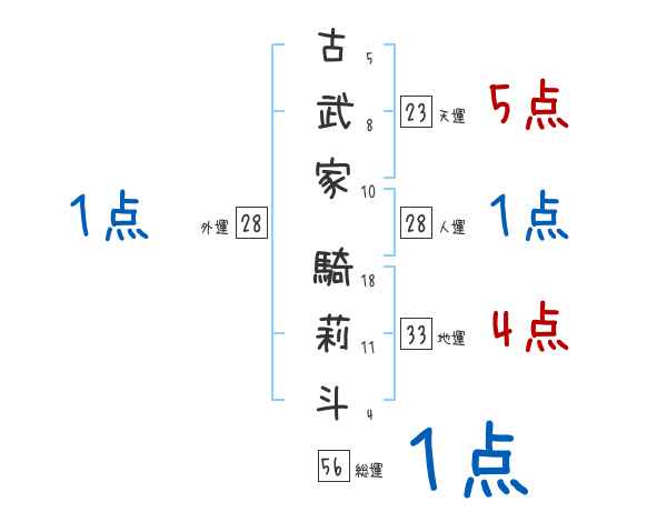 古武家騎莉斗さんの画数の鑑定結果