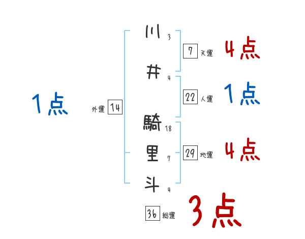 家系が持つ宿命的な運勢を表します。祖先から受け継いだ苗字ですので自分の力が及びません。家柄を象徴します。