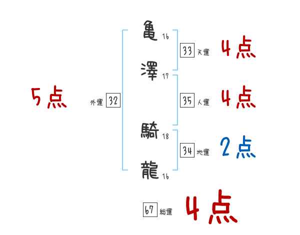 亀澤騎龍さんの画数の鑑定結果