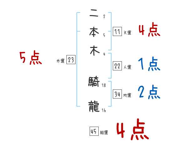 天運![]() | 二本木騎龍さんの天運は11画の4つ星!着実に富や地位を得る幸運な人生。 家系が持つ宿命的な運勢を表します。祖先から受け継いだ苗字ですので自分の力が及びません。家柄を象徴します。 |