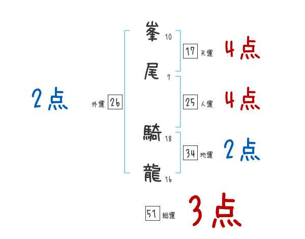 峯尾騎龍さんの画数の鑑定結果