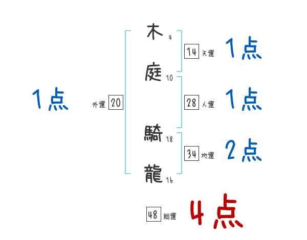 木庭騎龍さんの画数の鑑定結果