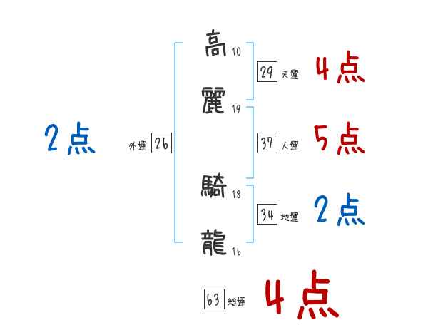 高麗騎龍さんの画数の鑑定結果