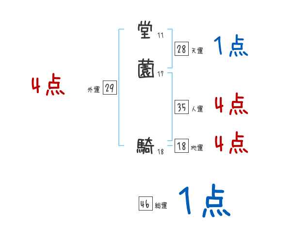 堂薗騎さんの画数の鑑定結果