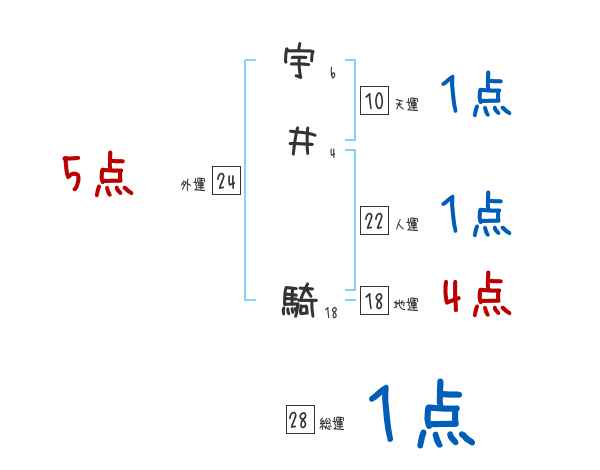 宇井騎さんの画数の鑑定結果
