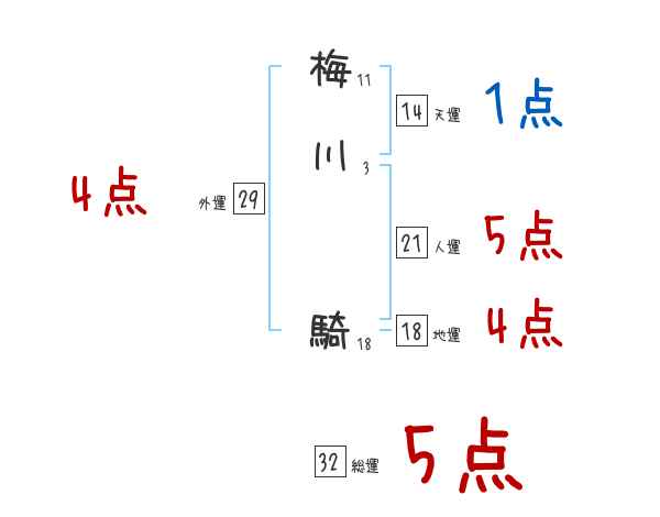 梅川騎さんの画数の鑑定結果