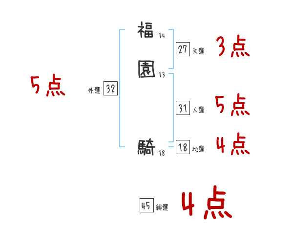 福園騎さんの画数の鑑定結果