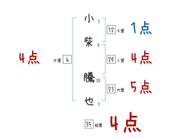 小柴騰也さんの画数の鑑定結果