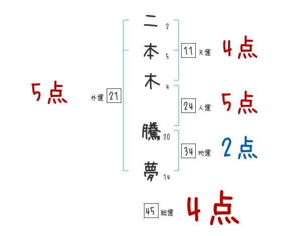 二本木騰夢さんの画数の鑑定結果