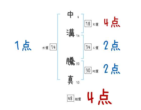 中溝騰真さんの画数の鑑定結果