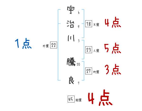 宇治川騰良さんの画数の鑑定結果