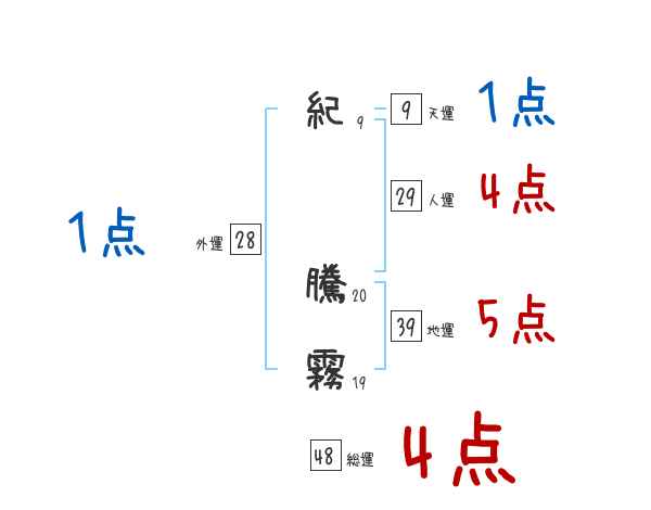 紀騰霧さんの画数の鑑定結果