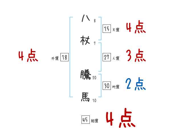 八杖騰馬さんの画数の鑑定結果