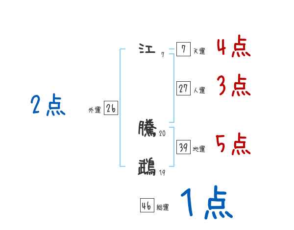 江騰鵡さんの画数の鑑定結果