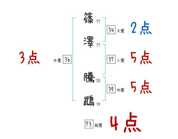 篠澤騰鵡さんの画数の鑑定結果