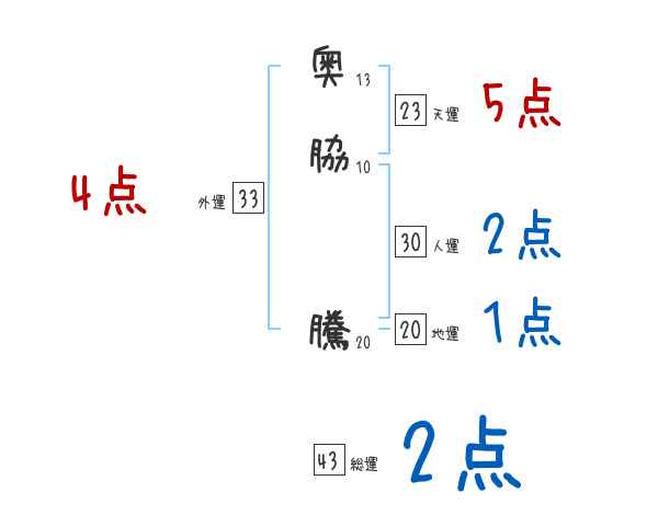 奥脇騰さんの画数の鑑定結果