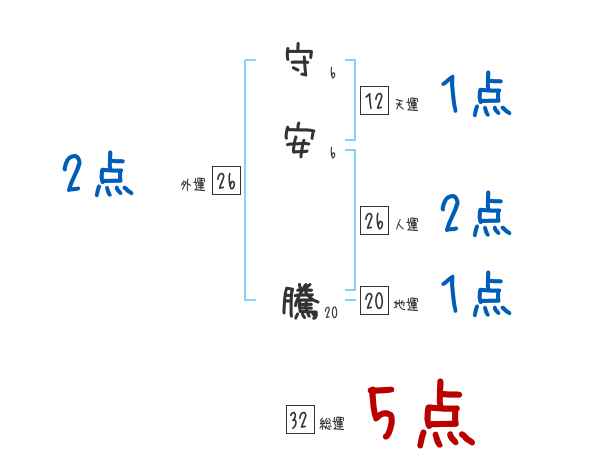 守安騰さんの画数の鑑定結果