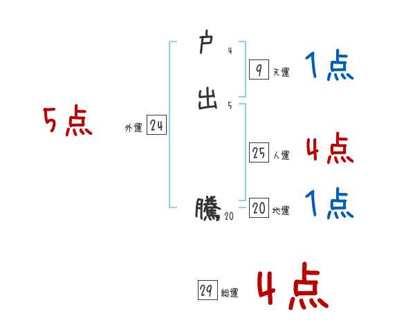 戸出騰さんの画数の鑑定結果