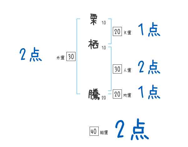 外運![]() | 栗栖騰さんの外運は30画の2つ星!浮き沈みの激しさに注意しましょう。 生活面を象徴する運勢です。外部から受ける影響力を表し、結婚運、家庭運や職場、環境への順応性を表します。 |