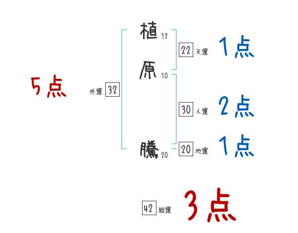 外運![]() | 植原騰さんの外運は32画の5つ星!柔軟性があり成功する。チャンスが多く金運が良い。 生活面を象徴する運勢です。外部から受ける影響力を表し、結婚運、家庭運や職場、環境への順応性を表します。 |