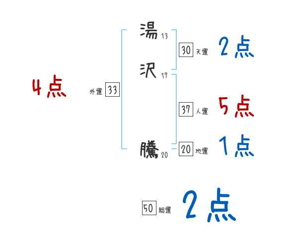 湯沢騰さんの画数の鑑定結果