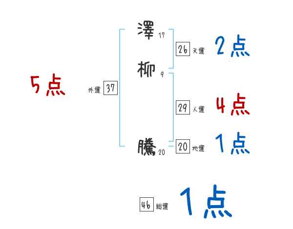 澤柳騰さんの画数の鑑定結果