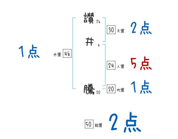 讃井騰さんの画数の鑑定結果
