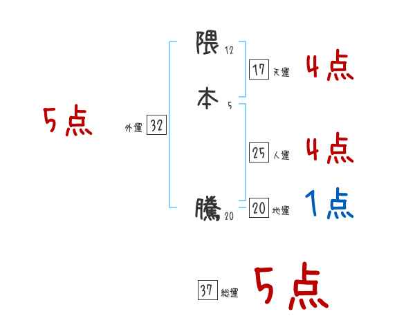 隈本騰さんの画数の鑑定結果